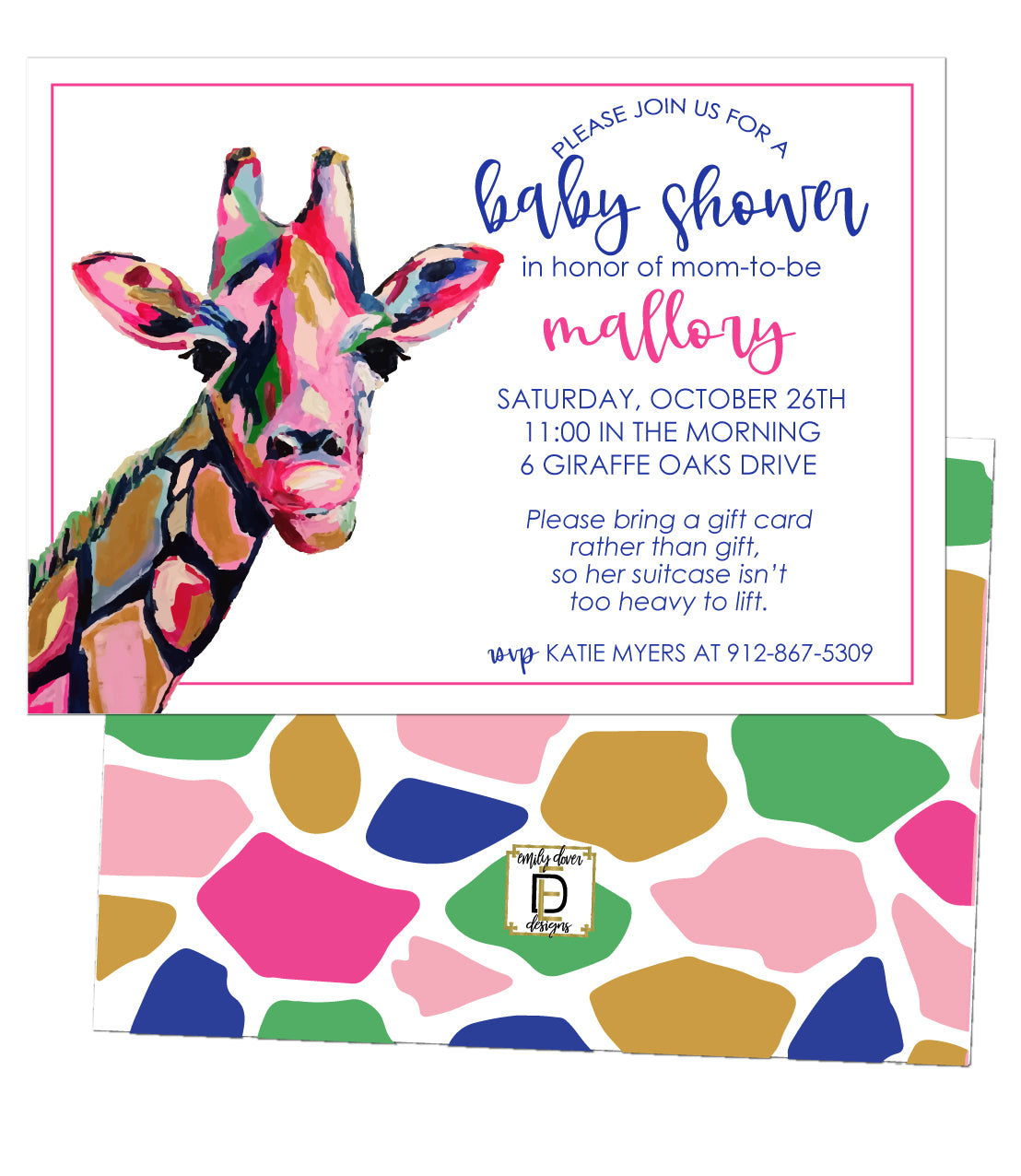 Abstract Giraffe Baby Shower Invitation