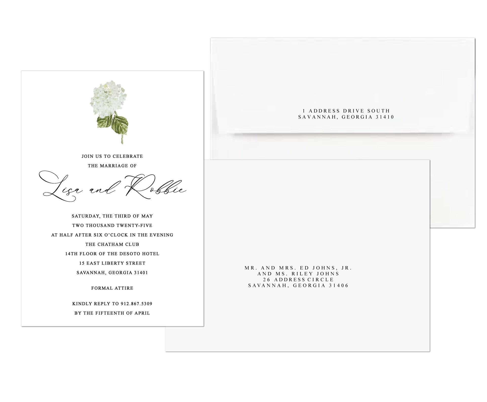 Invitations sold in sets of 25, with blank envelopes included. Envelope addressing options available.