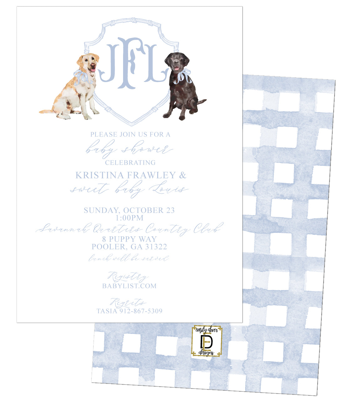 Pup Monogram Crest Baby Shower Invitation